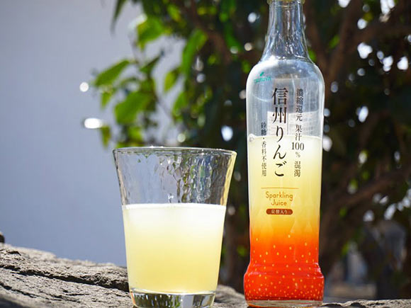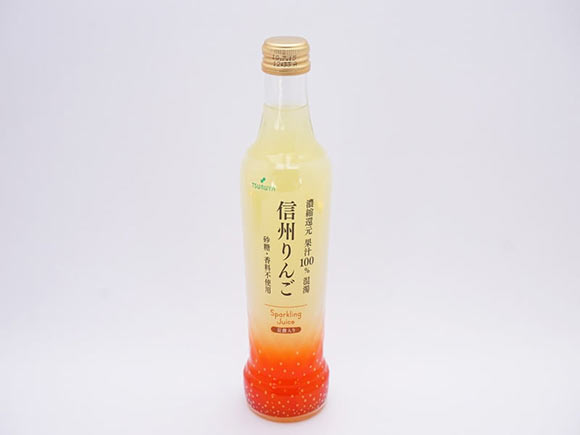 信州産りんご果汁を100%使用した、炭酸入りのりんごジュースです。