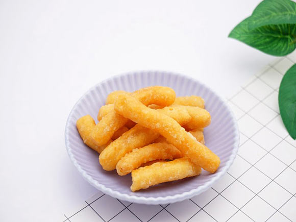 梅塩かりんとうは、およそ親指ほどの長さ。細長い形をしているので、ポリポリッと手軽に食べられるサイズです。