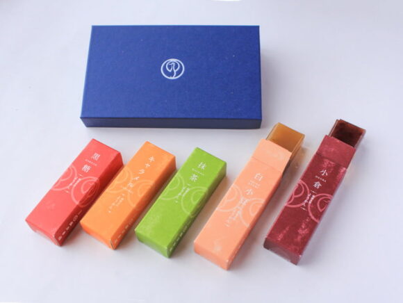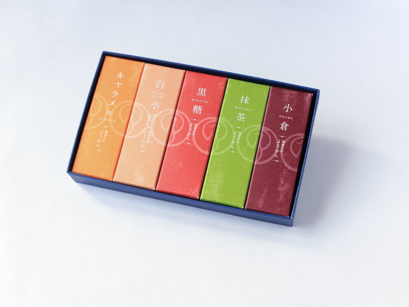 厳選した素材を用いた、5種の風味の小型タイプの羊羹。
