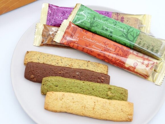 ゴーフルクラッシュクッキーは、アーモンド・チョコレート・アールグレイ・ピスタチオの4種類あります。