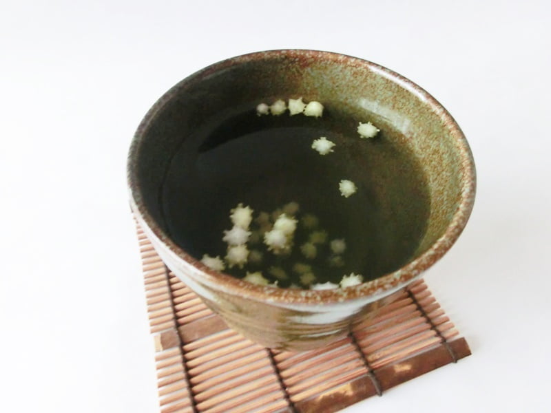 最後に、水を入れました。浮かんだ後、蜜糖が溶けてあられが登場。