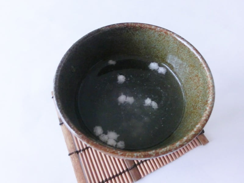 しばらくすると、まわりの砂糖蜜が溶けて、中のあられが現れました。