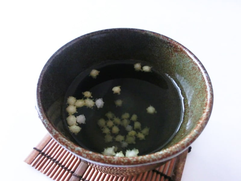 さらに、コップに入れて水を注ぐと、砂糖蜜が溶けて浮かんできます。