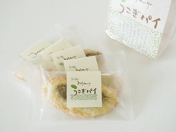 うこぎパイは、うこぎの葉をパウダー状にしてパイ生地と混ぜ合わせ、サブレ生地とともに焼き上げたお菓子。