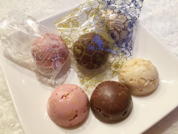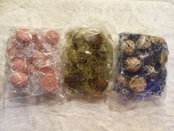中にはミルクチョコレート、ホワイトチョコレート、ストロベリーチョコレートのクランチが、それぞれ18個ずつ入っています。
