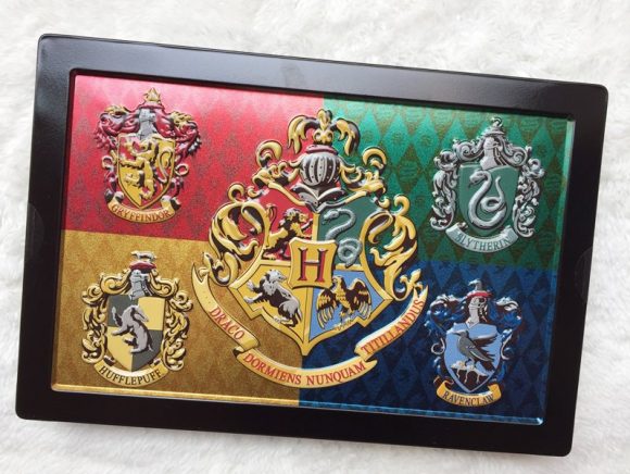 缶には、ホグワーツ魔法魔術学校と各寮の紋章が大きくプリントされています。