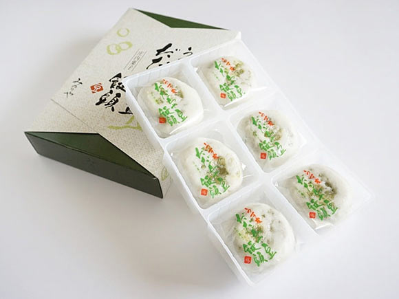 真っ白な饅頭に、黄緑色の文字がよく映える個包装。