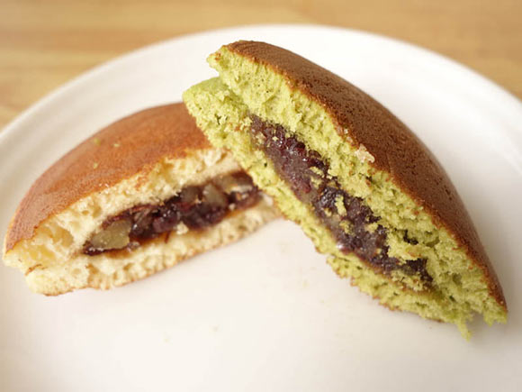 普通のつぶあんタイプが「栗撲」、生地と餡(あん)に宇治抹茶が使われているのが「抹茶栗撲」です。