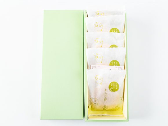 箱を開けると5個の個包装が崩れることなく、きれいに収まっています。