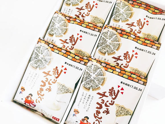 割りしみチョコせんべいは、70g入り1袋で395円、6袋入った箱入りが1,080円(税込)です。