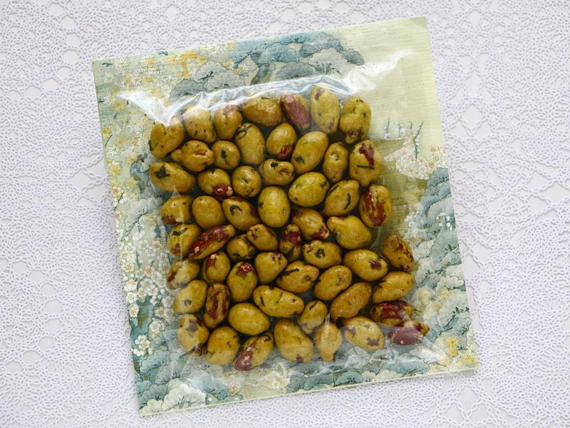 京の町かど わさびピーナッツはツンとくるわさびと、落花生がマッチしたおつまみにぴったりなお菓子です。