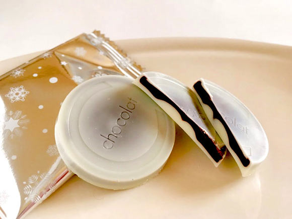 チョコレートをさらにホワイトチョコレートで包んだ、2層構造になっているユニークなチョコレートです。
