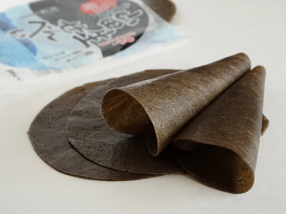 見た目はクレープの皮のようですが、非常にしっかりとしたむっちり感のある歯ごたえです。