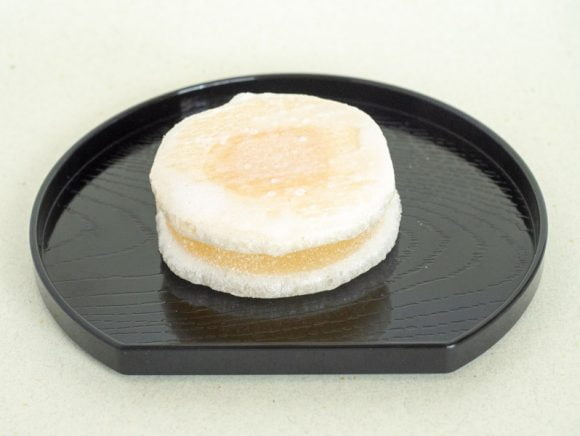 挟んである柚餅は、表面に砂糖がまぶされてあります。