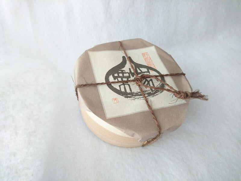 入れ物は桶型ですが四角いスリーブに入れて貰えるので、包装やのし紙にも対応してくれますよ。