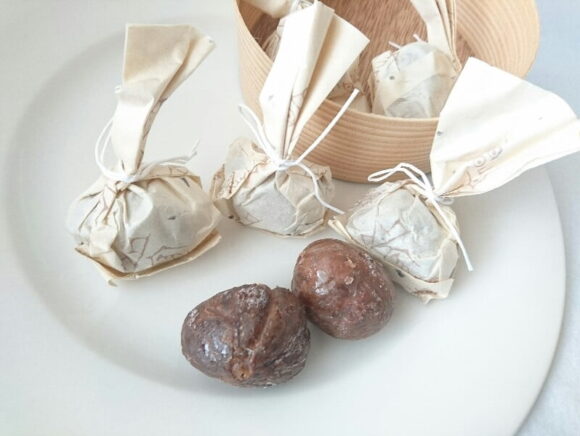 なんでも、渋皮だけ残して仕上げるのは手間暇がかかるから、高価になるんだとか。これはひと味違うおみやげになると思い、選んでみました。