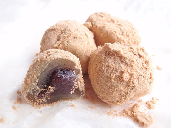 モチモチのお団子には、お団子が見えないほどたっぷりのきなこがかかっています。