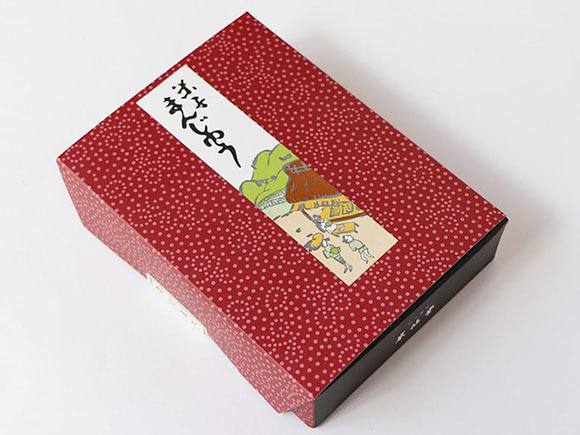 峠の茶屋が描かれた化粧箱は風呂敷包みのようなきれいな赤色で、お饅頭も個包装されており、値段も手ごろなので、米子のお土産によさそうです。