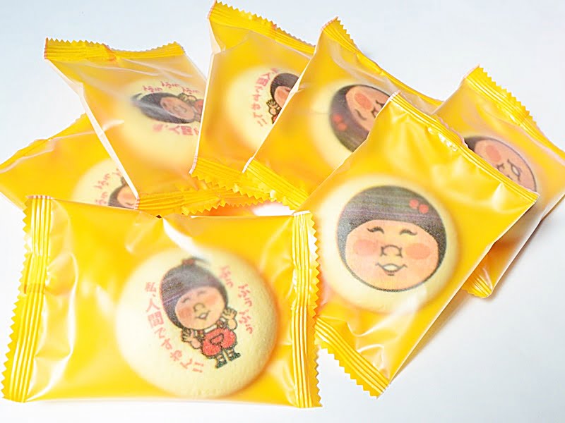 チョコレート入りのクッキーで、味は同じですが、絵柄が2種類あります。どちらも愛ちゃんが満面の笑みの絵です。