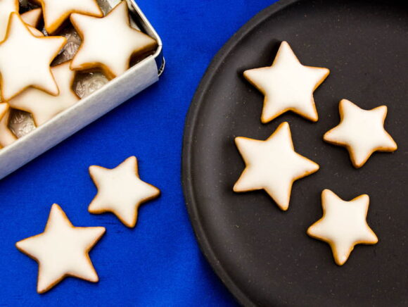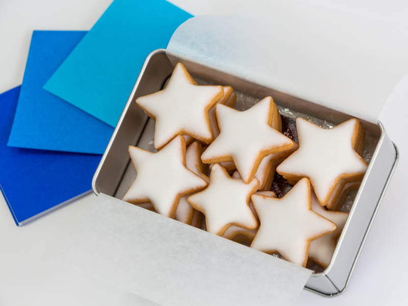青いリボンがかけられた銀色の小さな缶の中には、星の形のクッキーがぎっしり。