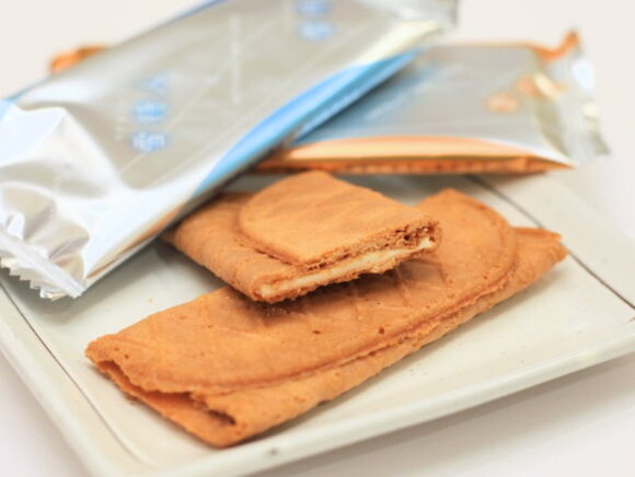 クッキーの生地がとても薄くてサクサクしているのですが、その反面で生地が折れやすいともいえますね。