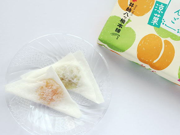 白い八ッ橋の皮の中には緑の青りんご餡が透けてみえます。