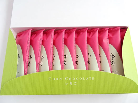 サクサクとした食感と、とうもろこしの香ばしい風味に、いちごの酸味と甘さをを感じるとうきびチョコレート。