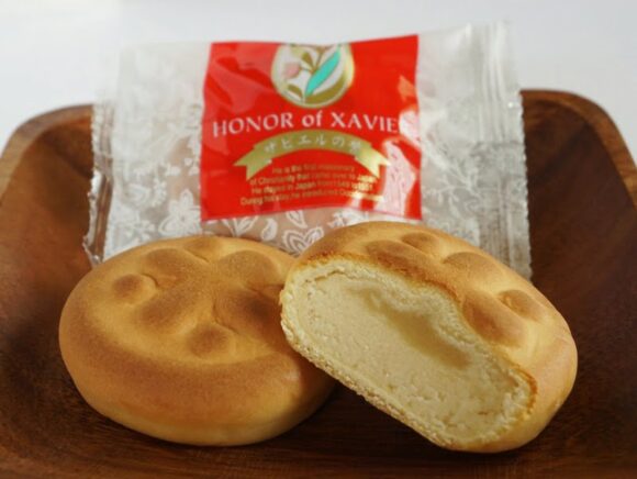 こちらのお菓子はバターが香る薄皮でミルク入りの餡を包んだもの。ザビエルの心意気をたたえ、欧州のエッセンスを加えた洋風のお菓子です。
