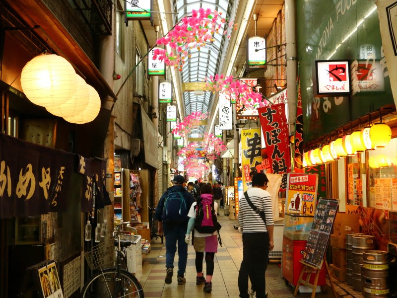 ▼御堂筋線 動物園前駅から向かうと飲食店が並ぶアーケード街を通ります。新世界だけあって、串かつだるまなど、串かつの有名店が多くありますよ。