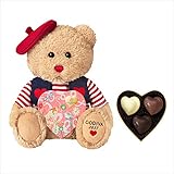 まっすぐにこちらを見つめるベアがハート形の入れものを抱えています。
